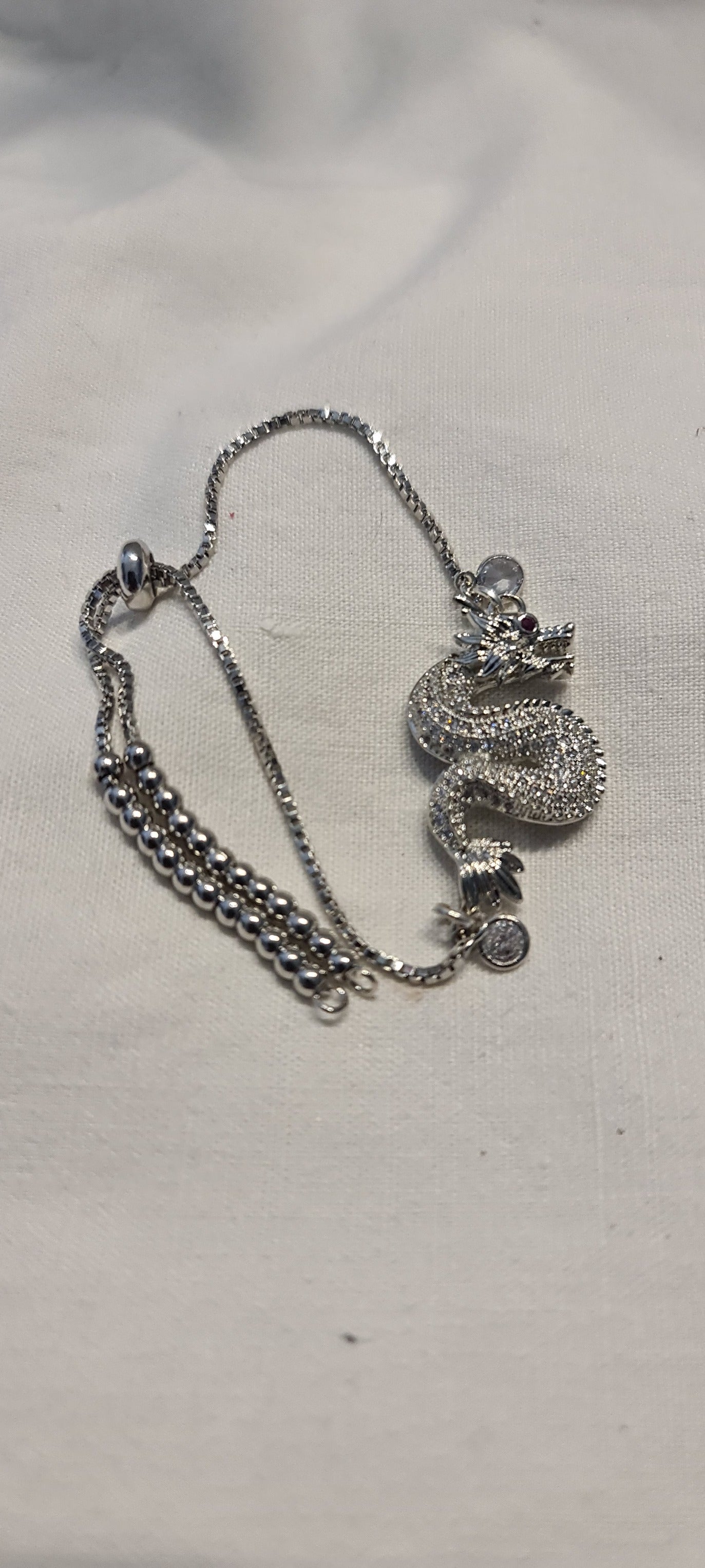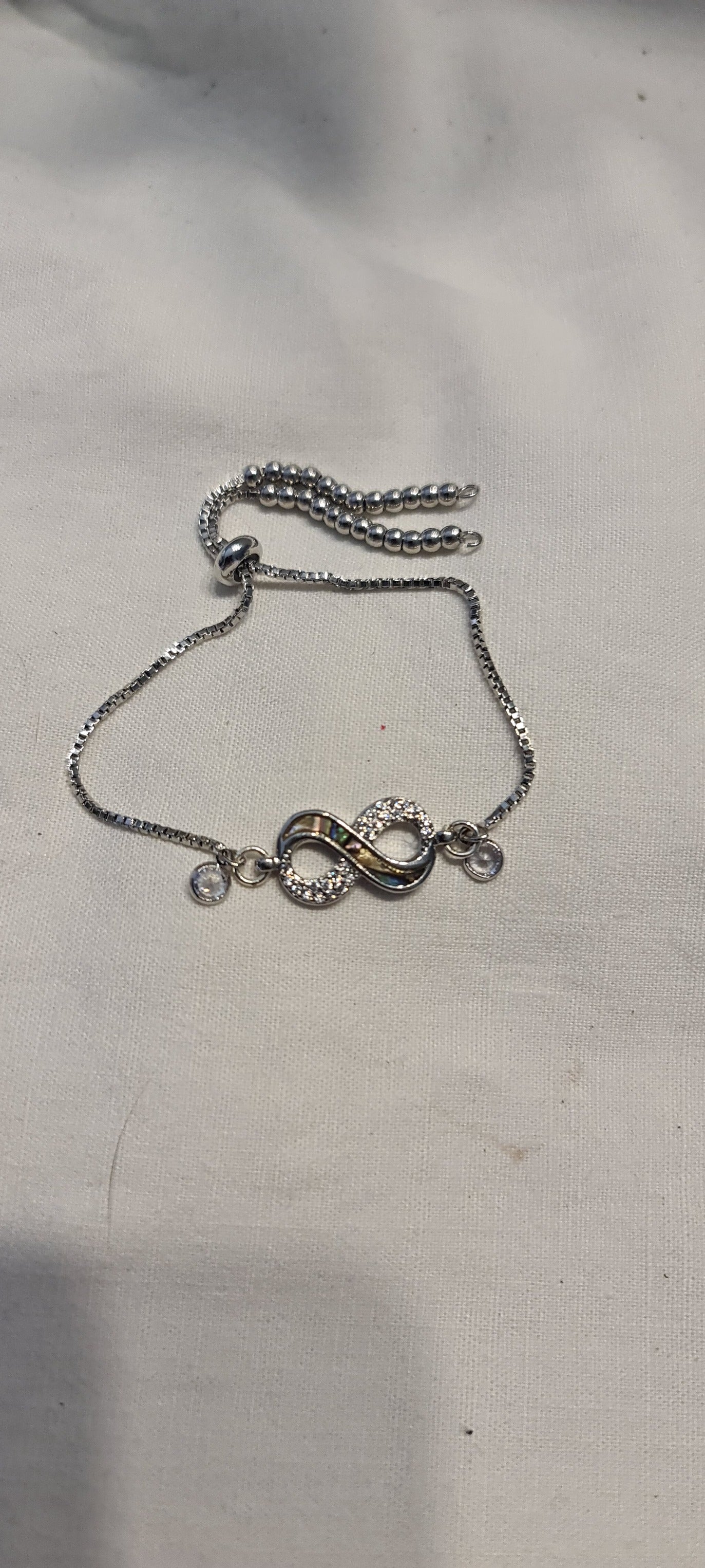 Bracelet argenté en acier inoxydable avec connecteurs argentés de différentes formes, en acier inoxydable.