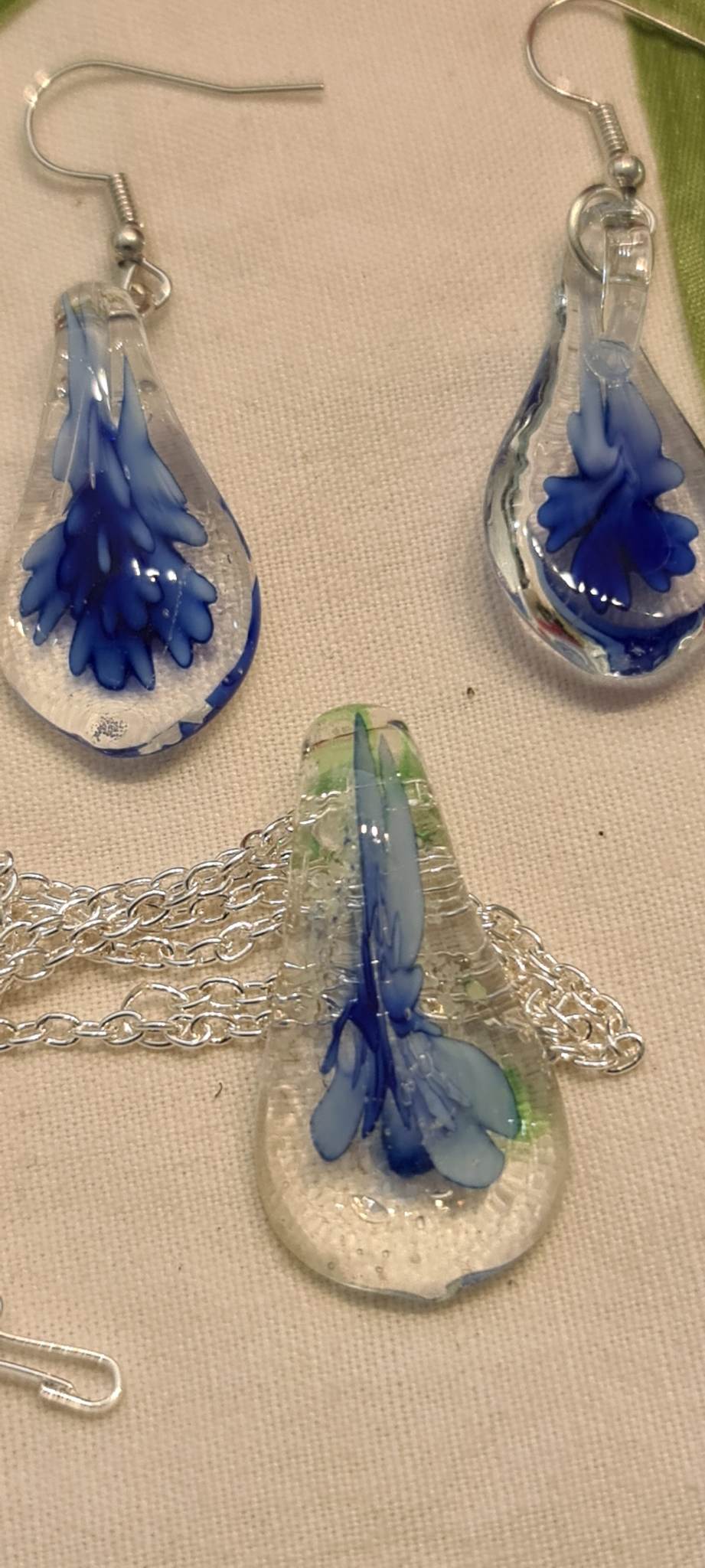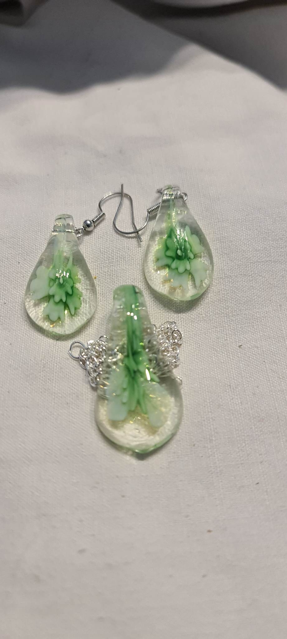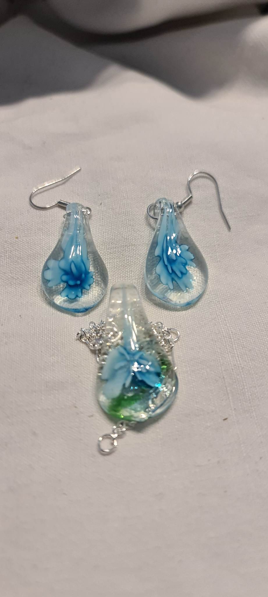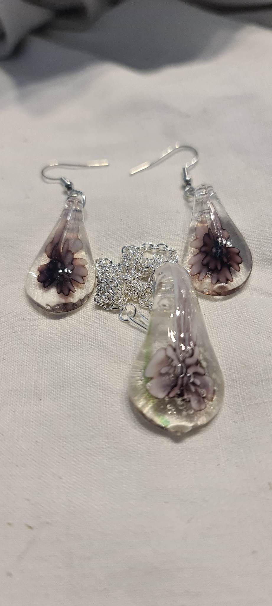 Jolie parure de fleurs ancrée dans du verre transparent en forme de gouttes.